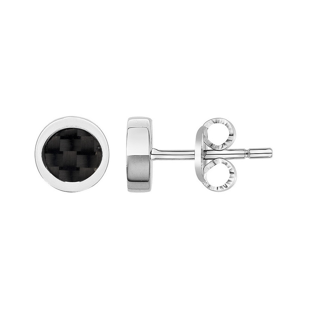 Boucles d'oreilles acier rondes et carbone noir. Chaque bijou est soigneusement emballé et livré dans son écrin.