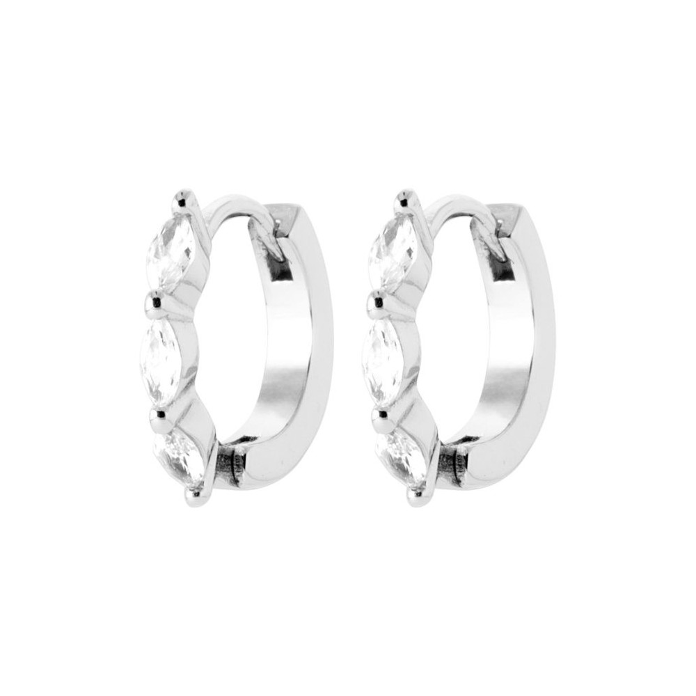 Creole argent 925 rhodie avec oxydes. Chaque bijou est livré et protégé dans son écrin.
