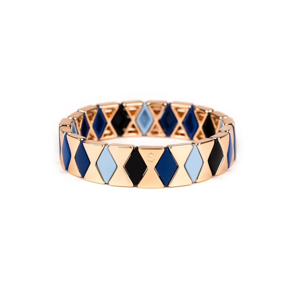Bracelet en métal émaillé monté sur élastique pour Femme de la marque Simone à Bordeaux Réf. LOS-SK-M, collection Losange.