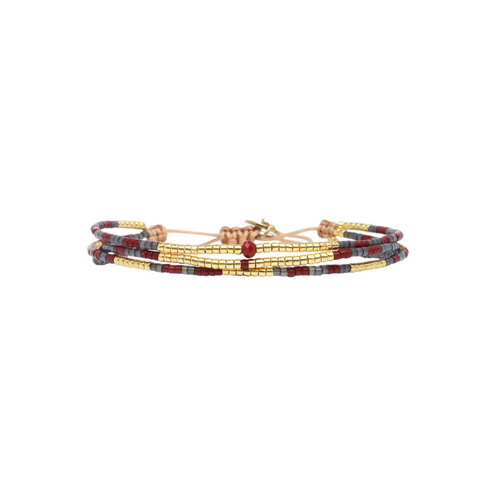 Bracelet Agathe Perles de Miyuki dorées à l’or fin, pépites dorées et cristal. Assortiment des couleurs Anthracite et Acajou (Mahogany enflammé). Bracelet entièrement confectionné à la main de manière artisanale. Chaque bijou de la marque est livré dans un pochon spécifique.