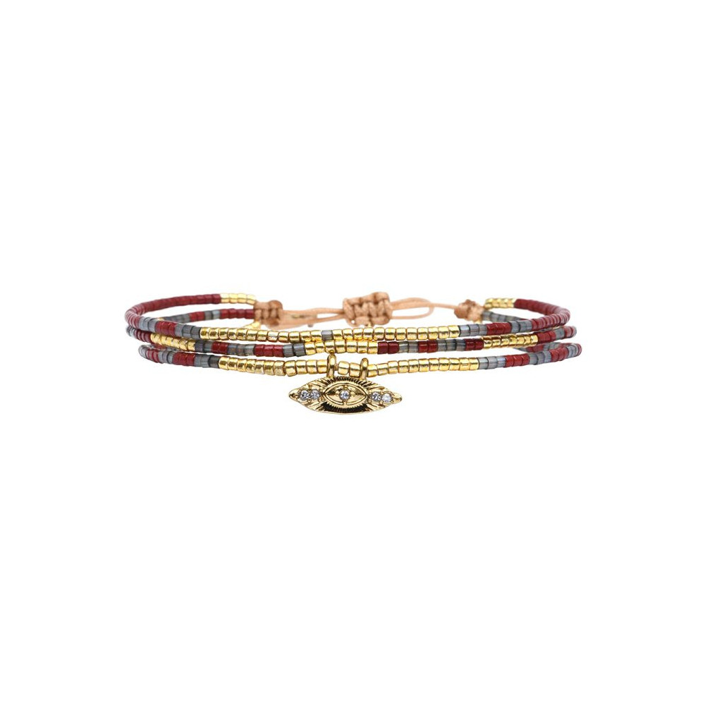 Bracelet Lise Perles de Miyuki dorées à l’or fin, pépites dorées et cristal. Assortiment des couleurs Anthracite et Acajou (Mahogany enflammé). Bracelet entièrement confectionné à la main de manière artisanale. Chaque bijou de la marque est livré dans un pochon spécifique.