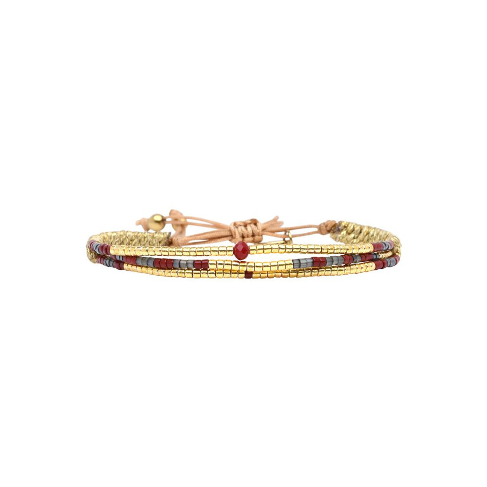 Bracelet Chloé Perles de Miyuki dorées à l’or fin, pépites dorées et cristal. Assortiment des couleurs Anthracite et Acajou (Mahogany enflammé). Bracelet entièrement confectionné à la main de manière artisanale. Chaque bijou de la marque est livré dans un pochon spécifique.