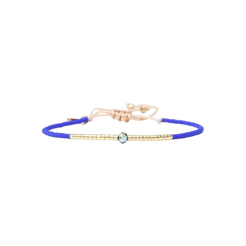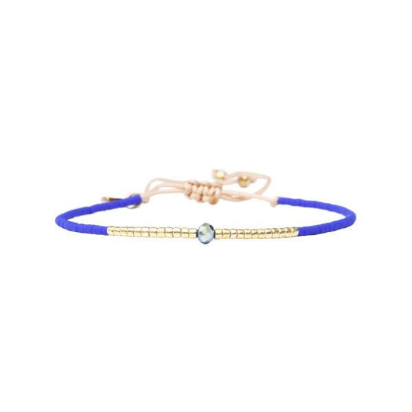 Bracelet Clara Perles de Miyuki dorées à l’or fin, pépites dorées et cristal. Assortiment des couleurs Nuage de lait - Bleu Roi - Metalic Blue - Vert Iris. Bracelet entièrement confectionné à la main de manière artisanale. Chaque bijou de la marque est livré dans un pochon spécifique.