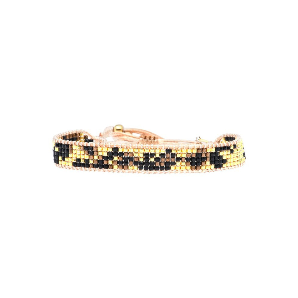 Bracelet Maasaï Perles de Miyuki dorées à l’or fin, pépites dorées et cristal. Assortiment des couleurs Noir satin profond - Cœur de bronze. Bracelet entièrement confectionné à la main de manière artisanale. Chaque bijou de la marque est livré dans un pochon spécifique.