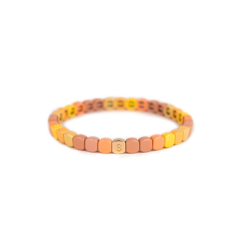 Bracelet Colorful Mini Amourette Moyen monté sur élastique multibrins ou unibrin, composé d'éléments en métal émaillé, de laiton doré et pour certains de strass en zirconium. Chaque bijou de la marque est livré dans son pochon spécifique griffé Simone à Bordeaux.