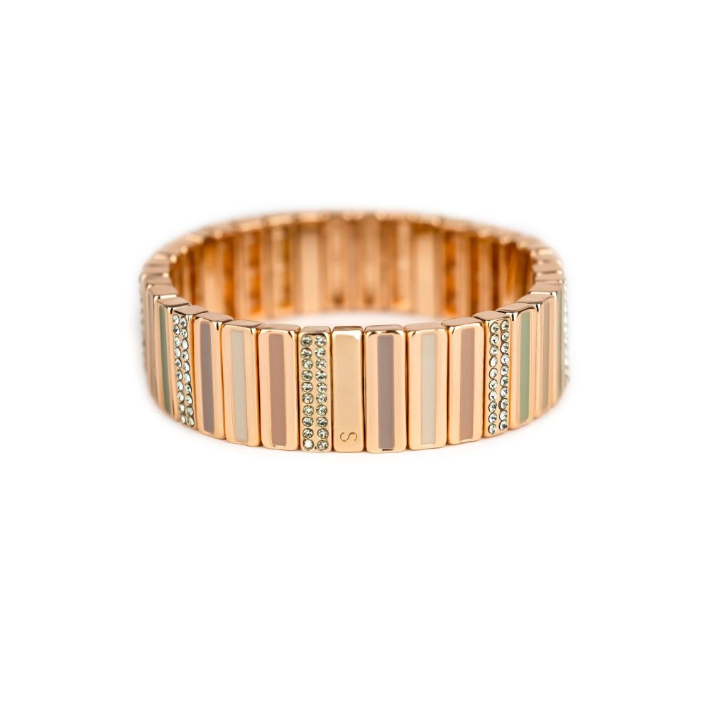 Bracelet Baguette Strass Balade Moyen monté sur élastique multibrins ou unibrin, composé d'éléments en métal émaillé, de laiton doré et pour certains de strass en zirconium. Chaque bijou de la marque est livré dans son pochon spécifique griffé Simone à Bordeaux.