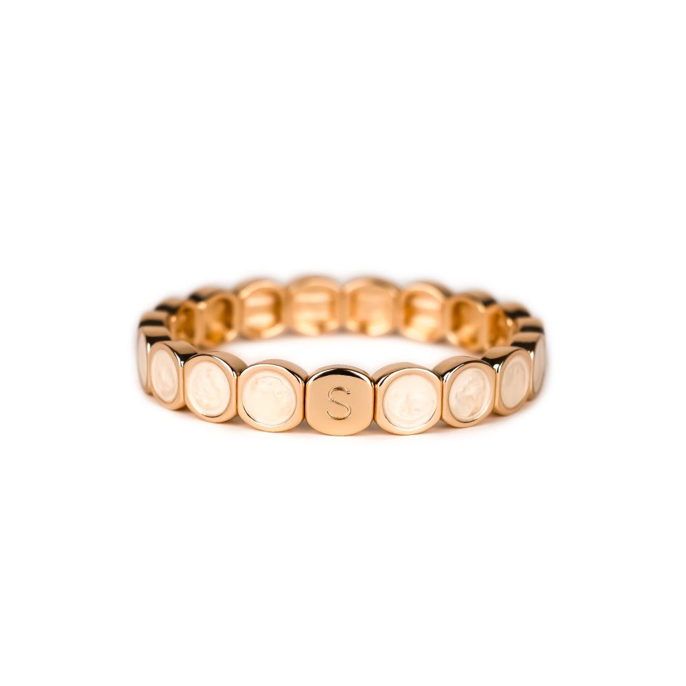 Bracelet Colormind Carrara Beige Moyen monté sur élastique multibrins ou unibrin, composé d'éléments en métal émaillé, de laiton doré et pour certains de strass en zirconium. Chaque bijou de la marque est livré dans son pochon spécifique griffé Simone à Bordeaux.