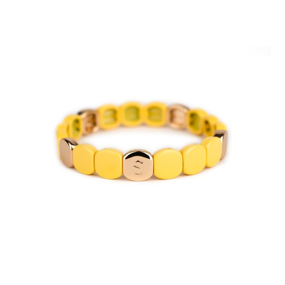 Bracelet Colorful Citron Moyen monté sur élastique multibrins ou unibrin, composé d'éléments en métal émaillé, de laiton doré et pour certains de strass en zirconium. Chaque bijou de la marque est livré dans son pochon spécifique griffé Simone à Bordeaux.