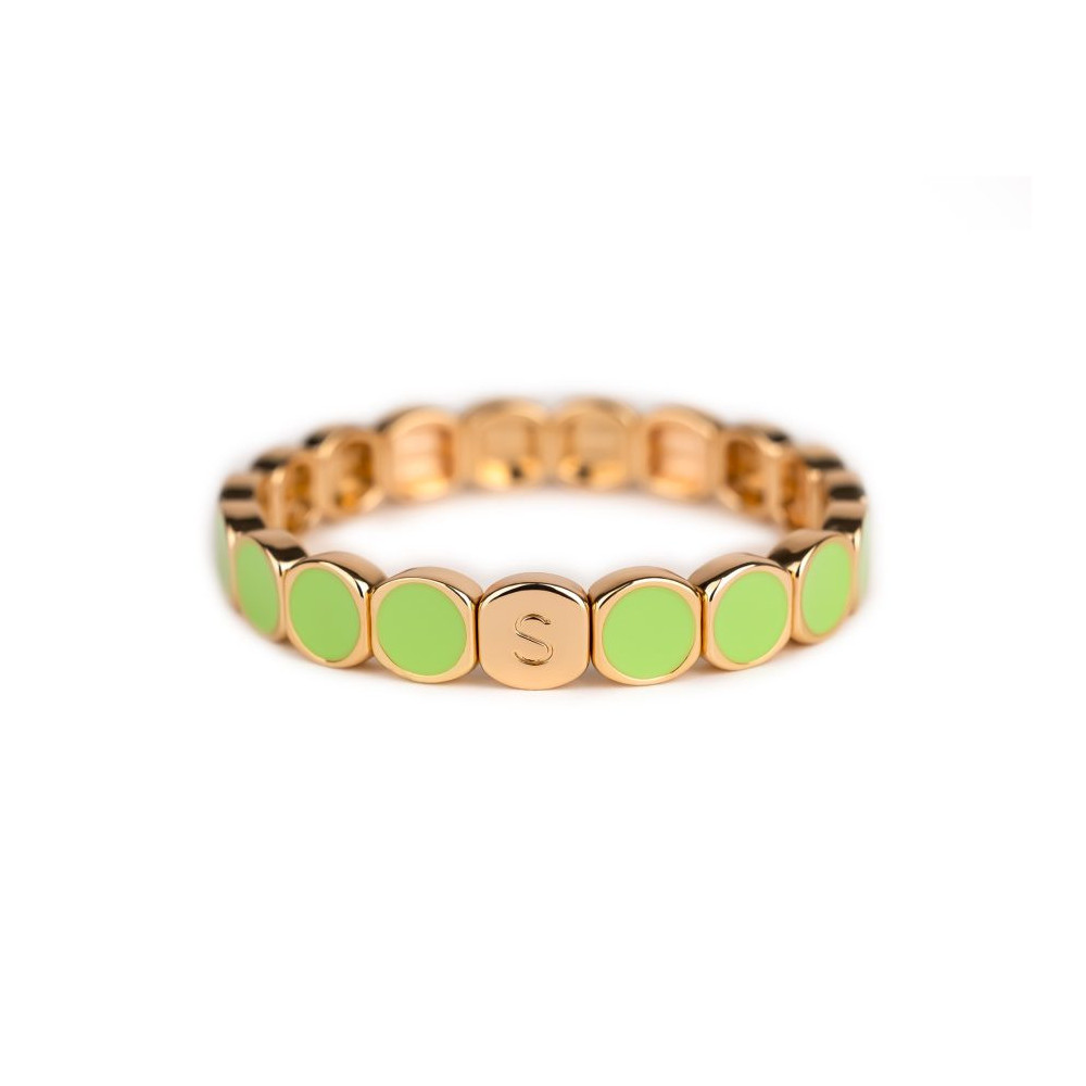 Bracelet Colormind Aloe Moyen monté sur élastique multibrins ou unibrin, composé d'éléments en métal émaillé, de laiton doré et pour certains de strass en zirconium. Chaque bijou de la marque est livré dans son pochon spécifique griffé Simone à Bordeaux.