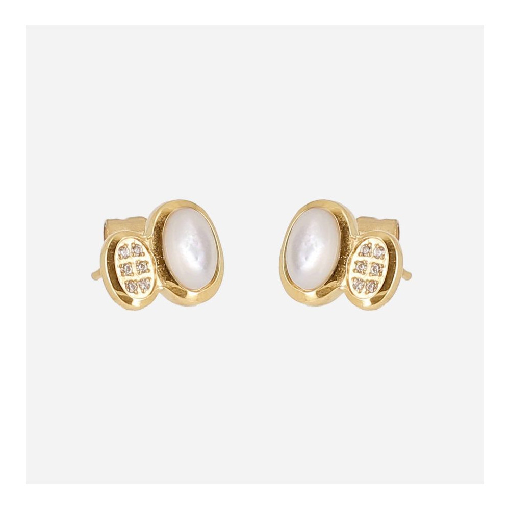 BOUCLE D'OREILLE–Nicolosi–ACIER DORE–zirconium+nacre. Chaque bijou de la marque est livré dans son pochon spécifique griffé Zag.