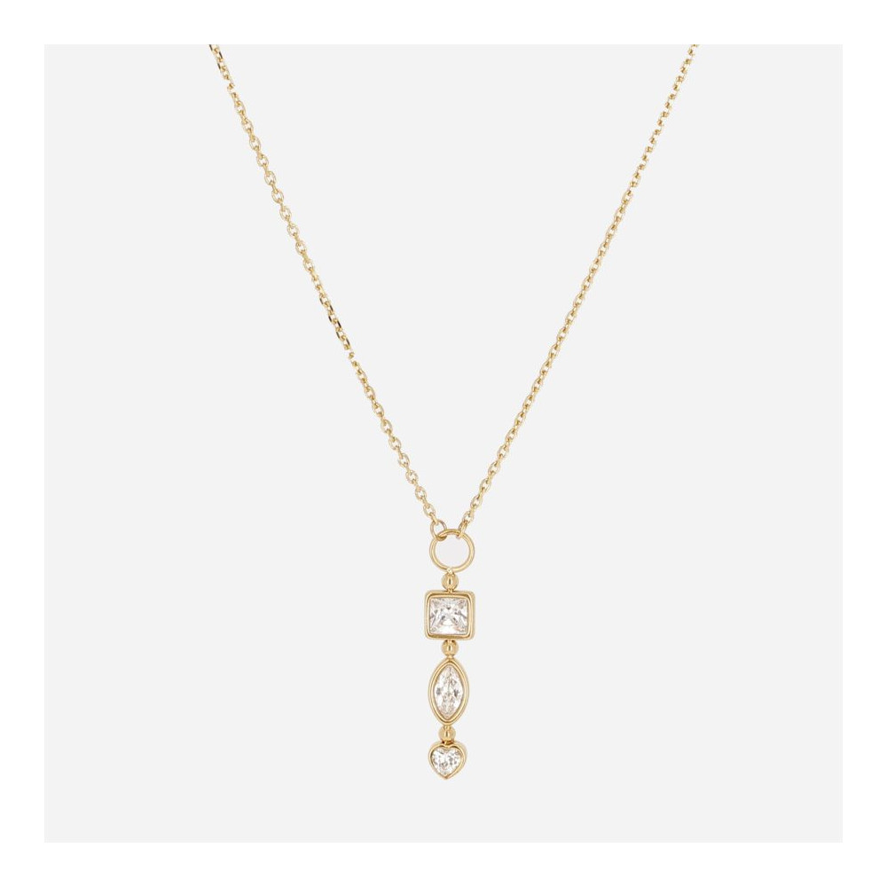 COLLIER–Ugento–ACIER DORE–zirconium–38+5cm. Chaque bijou de la marque est livré dans son pochon spécifique griffé Zag.