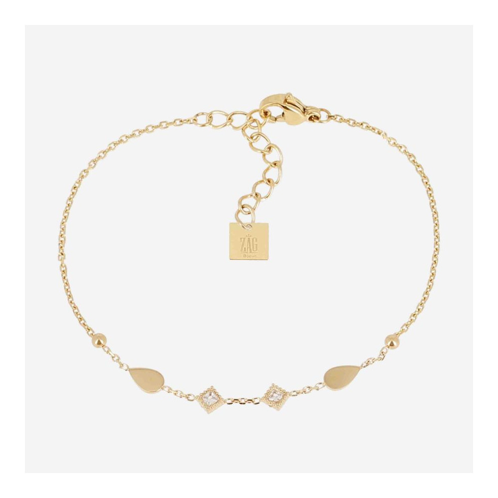 BRACELET–Taverna–ACIER DORE–zirconium–15+2+2cm. Chaque bijou de la marque est livré dans son pochon spécifique griffé Zag.