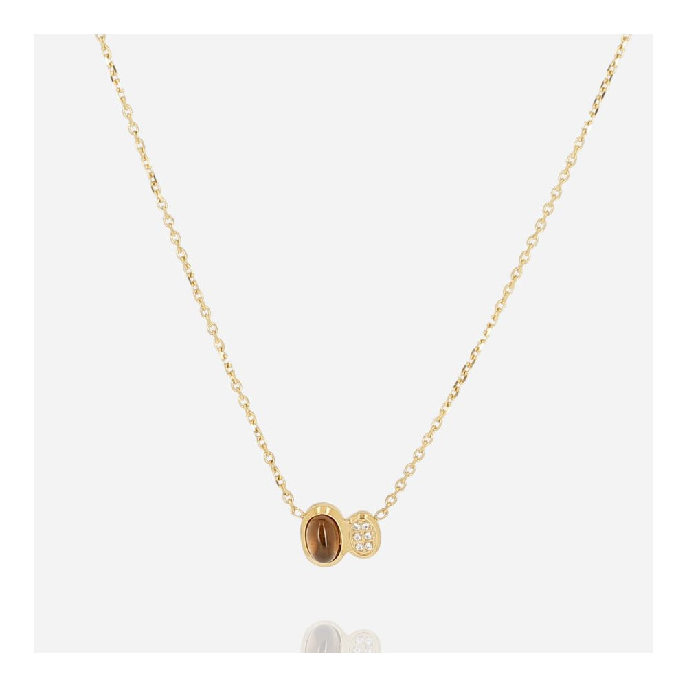 COLLIER–Nicolosi–ACIER DORE–zirconium+quartz fume–38+5cm. Chaque bijou de la marque est livré dans son pochon spécifique griffé Zag.