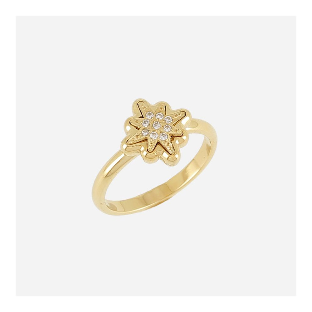 BAGUE–Acilia–ACIER DORE–zirconium sertis. Chaque bijou de la marque est livré dans son pochon spécifique griffé Zag.
