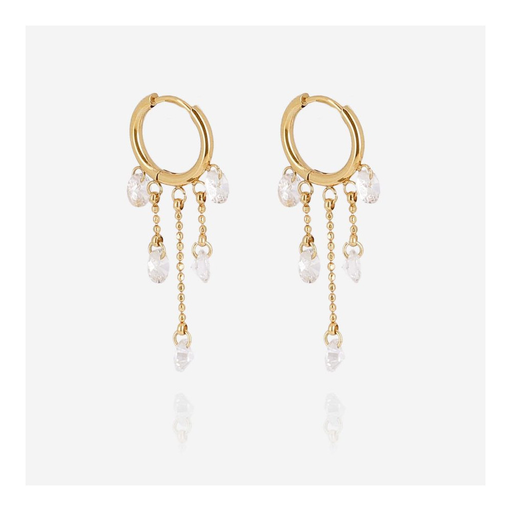 BOUCLE D'OREILLE–Molfetta–ACIER DORE–zirconium. Chaque bijou de la marque est livré dans son pochon spécifique griffé Zag.