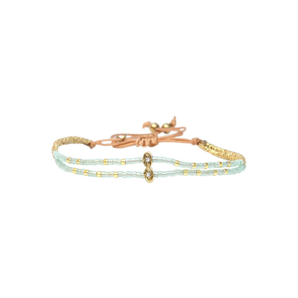 Bracelet Ella composé de perles de miyuki dorées - vert flâner au jardin. Bracelet entièrement confectionné à la main de manière artisanale. Fermoir lien coulissant, ajustable à tous les poignet (14 à 24 cm). Chaque bijou de la marque est livré dans un pochon spécifique.