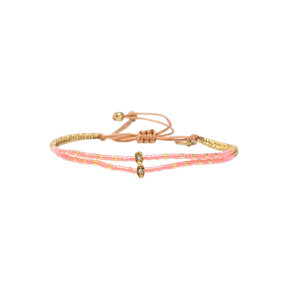Bracelet Ella composé de perles de miyuki dorées - pêche melba. Bracelet entièrement confectionné à la main de manière artisanale. Fermoir lien coulissant, ajustable à tous les poignet (14 à 24 cm). Chaque bijou de la marque est livré dans un pochon spécifique.