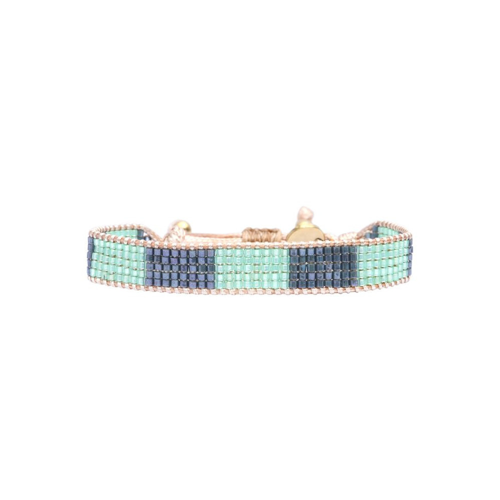 Bracelet Sunset Love composé de perles de miyuki leu délicat pastel - émeraude lustré. Bracelet entièrement confectionné à la main de manière artisanale. Fermoir lien coulissant, ajustable à tous les poignet (14 à 24 cm). Chaque bijou de la marque est livré dans un pochon spécifique.
