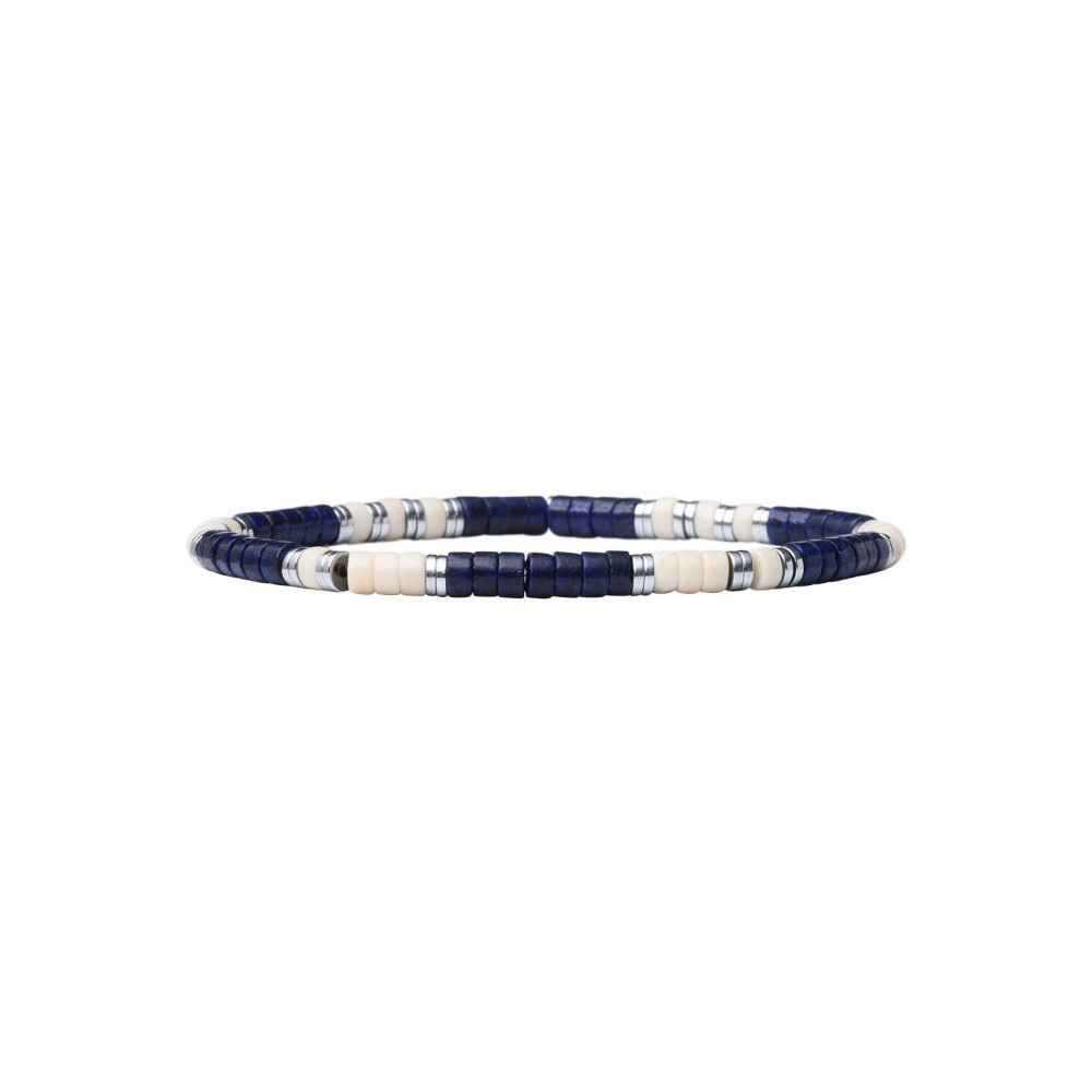 Le Bracelet Leo, monté sur un élastique ultra résistant, est composé d' hématites argentées, lapis lazuli et pierre de rivière.Pour tous les poignet (16 à 20 cm). Chaque bijou de la marque est livré dans un pochon spécifique.