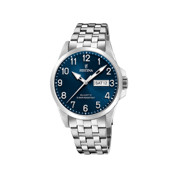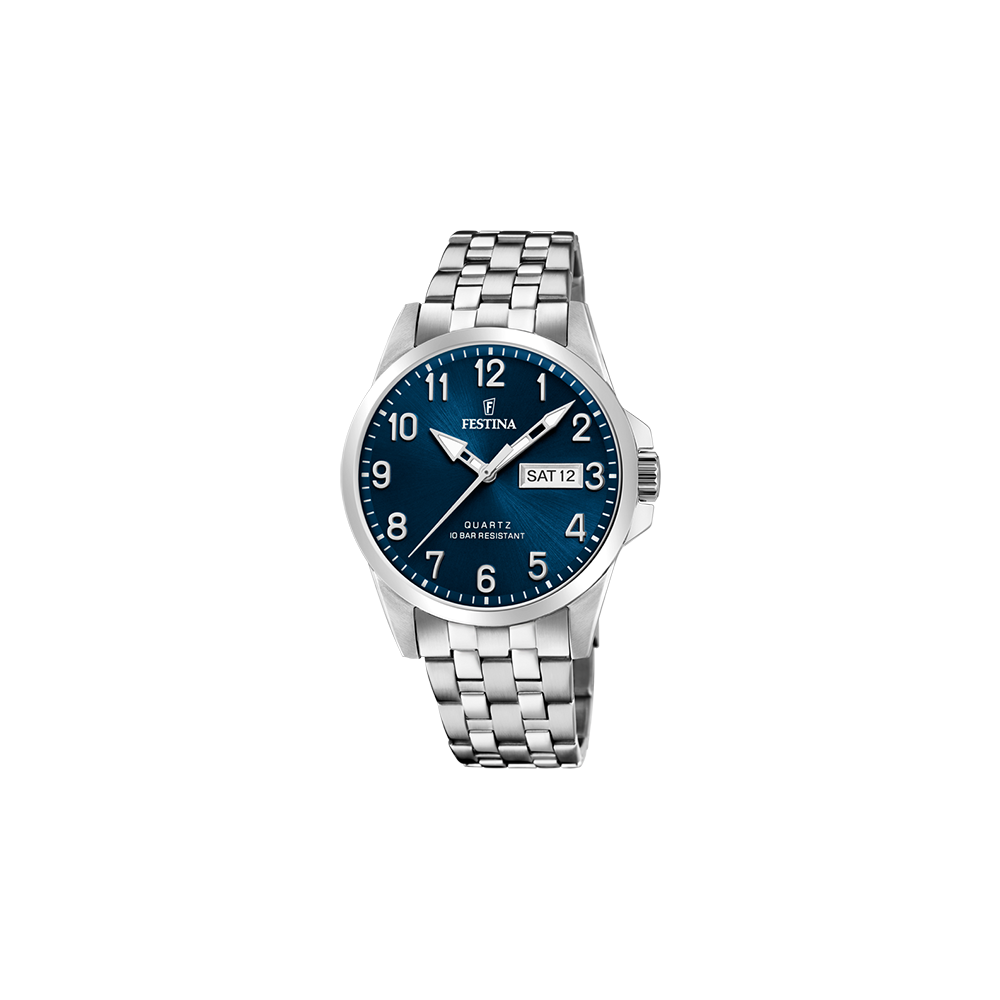 Montre Festina en Acier Réf. F20357/C pour Homme, fond Bleu, bracelet Acier, de la collection CLASSIQUE. Chaque montre est garantie 2 ans et livrée dans son écrin spécifique griffé au nom de la marque