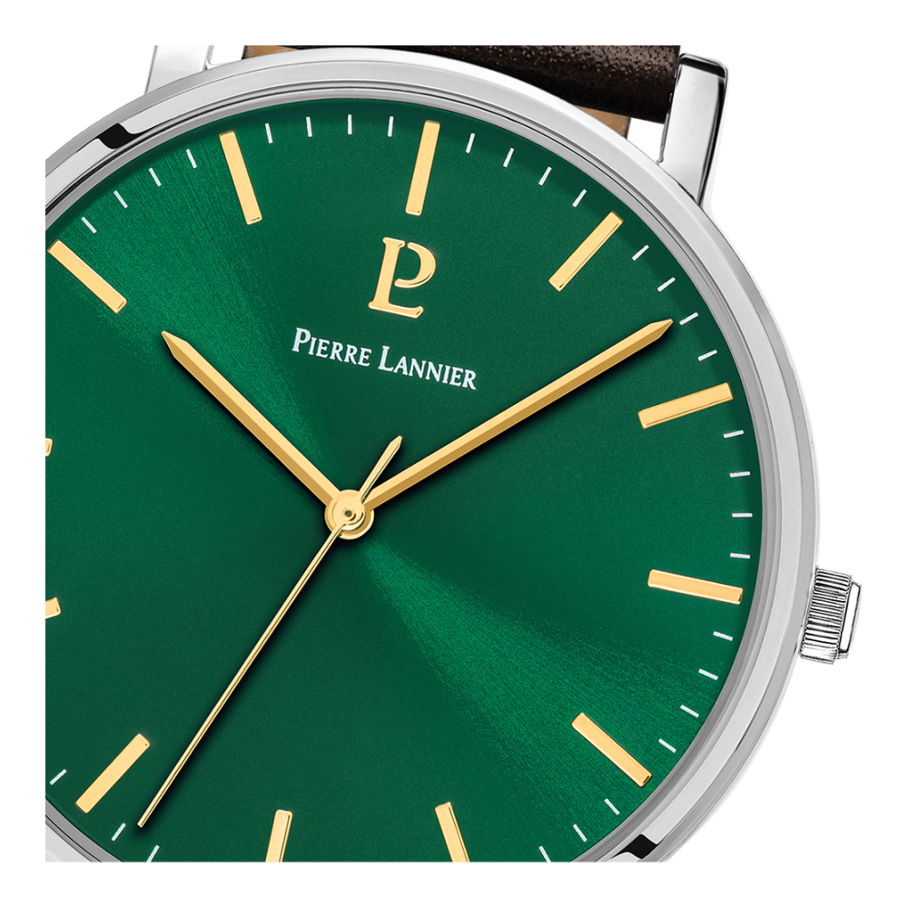 La montre homme Essential 217G174 se démarque grâce à son cadran vert et à son bracelet en cuir brun, qui combinent élégance classique et style moderne. Chaque montre est livrée dans un écrin spécifique griffé au nom de Pierre Lannier et bénéficie d'une garantie internationale de 2 ans. Montre fabriquée avec beaucoup d'amour en France (67 - Bas Rhin).