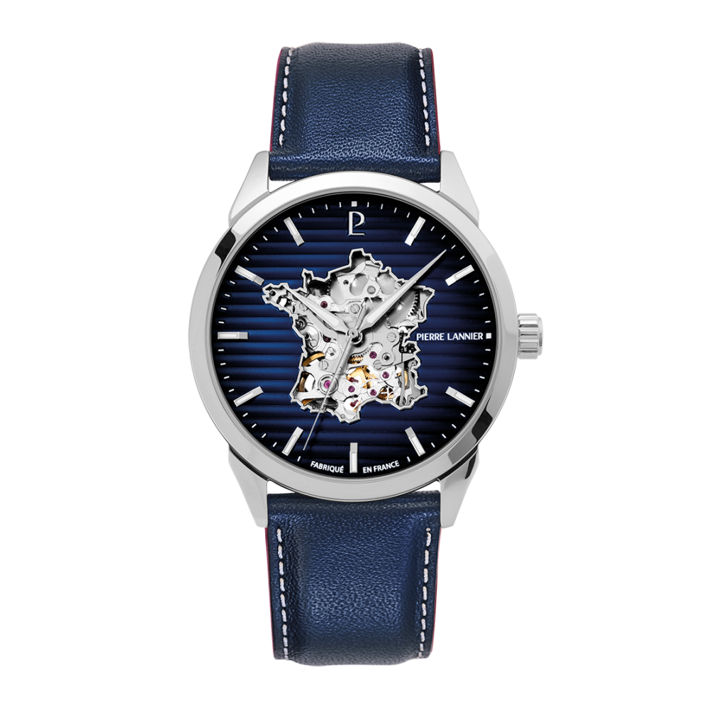 La montre Monarck 316F166 redonne vie au style patriotique grâce à son cadran en bleu fumé et à son design qui rappelle la France métropolitaine. Son bracelet en cuir bleu aux formes arrondies, avec une doublure rouge et des surpiqûres blanches, symbolise l'esprit tricolore. Chaque montre est livrée dans un écrin spécifique griffé au nom de Pierre Lannier et bénéficie d'une garantie internationale de 2 ans. Montre fabriquée avec beaucoup d'amour en France (67 - Bas Rhin).