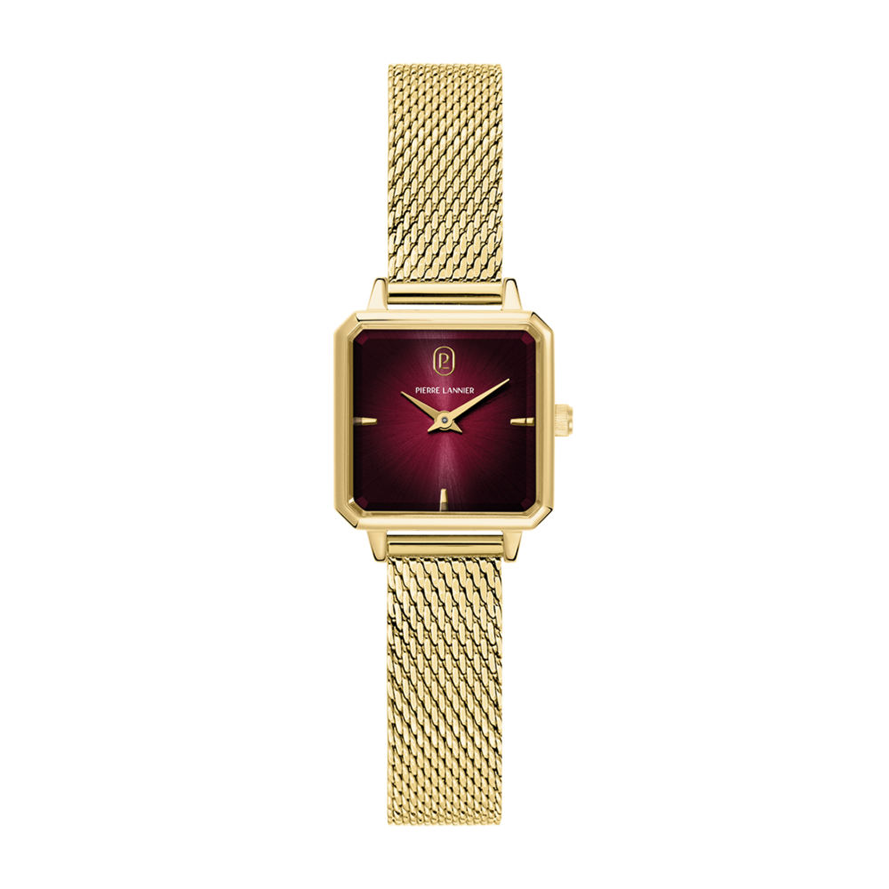 La montre Leonor 072J552 plaît grâce à son cadran en lie de vin, une couleur en vogue pour l’automne, et son bracelet en acier doré milanais. C’est un modèle élégant et chaleureux. Chaque montre est livrée dans un écrin spécifique griffé au nom de Pierre Lannier et bénéficie d'une garantie internationale de 2 ans. Montre fabriquée avec beaucoup d'amour en France (67 - Bas Rhin).