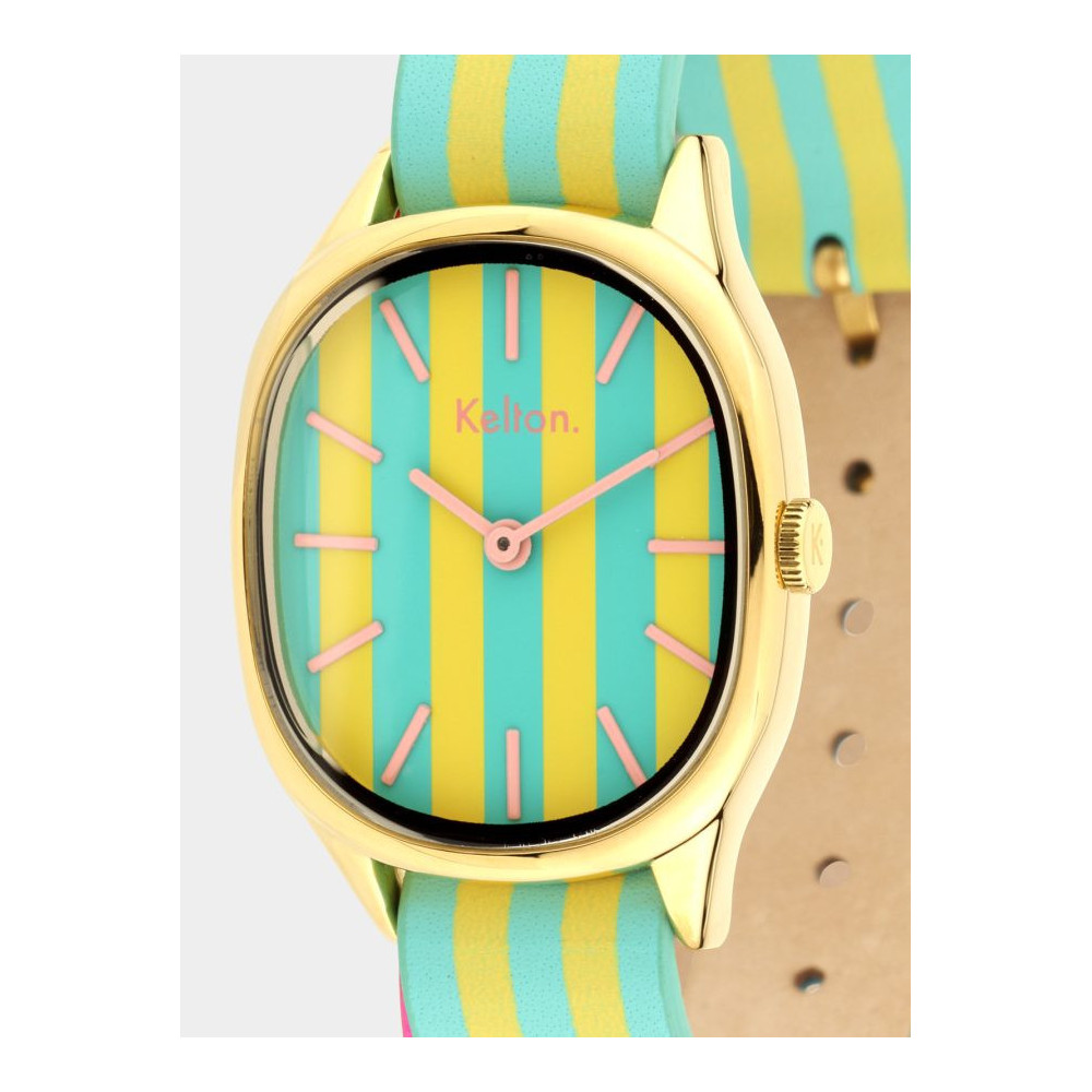 Montre Colorama Citron-basilic . Montre conçue et assemblée en France. Chaque Montre Kelton est livrée dans son écrin spécifique griffé au nom de la marque.