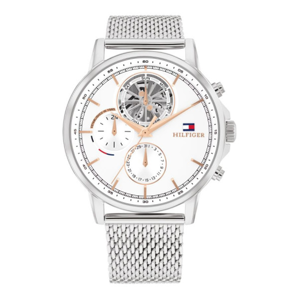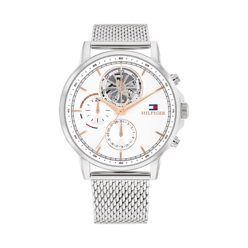 Montre Acier pour Homme, Bracelet Milanais Acier, de la ligne Stewart, Réf. 1710682. Chaque montre de la marque est livrée dans son écrin spécifique Tommy Hilfiger.