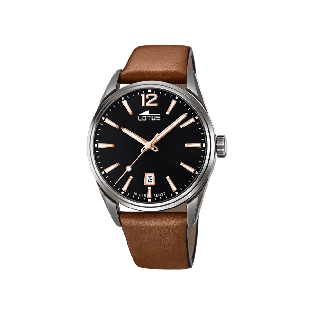 MONTRE LOTUS CHRONO 18685/2 NOIR, BRACELET CUIR, HOMME. Chaque montre Lotus est livrée dans un écrin spécifique griffé Lotus.