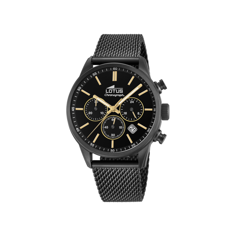 MONTRE LOTUS 18700/2 NOIR, BRACELET EN ACIER INOXYDABLE, HOMME. Chaque montre Lotus est livrée dans un écrin spécifique griffé Lotus.