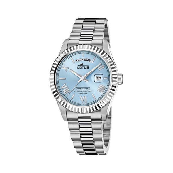 MONTRE LOTUS 18854/8 BLEU, BRACELET EN ACIER INOXYDABLE 316L, HOMME. Chaque montre Lotus est livrée dans un écrin spécifique griffé Lotus.