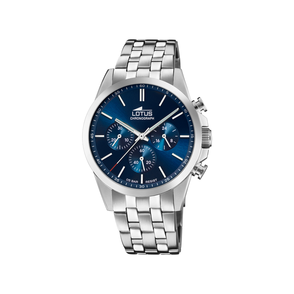 MONTRE LOTUS CHRONO 18989/2 BLEU BRACELET EN ACIER INOXYDABLE HOMME. Chaque montre Lotus est livrée dans un écrin spécifique griffé Lotus.