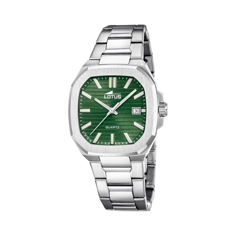 MONTRE LOTUS 19047/3 VERT, BRACELET D’ ACIER INOXYDABLE, HOMME. Chaque montre Lotus est livrée dans un écrin spécifique griffé Lotus.