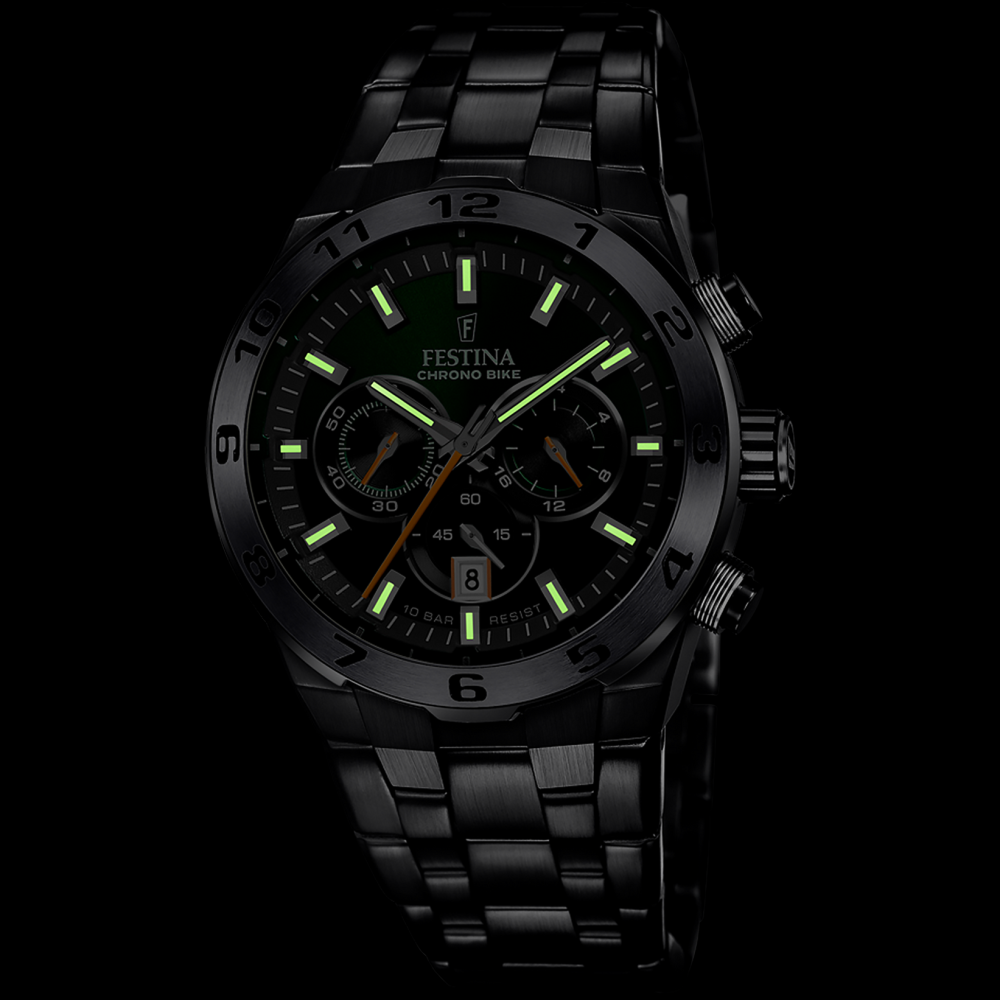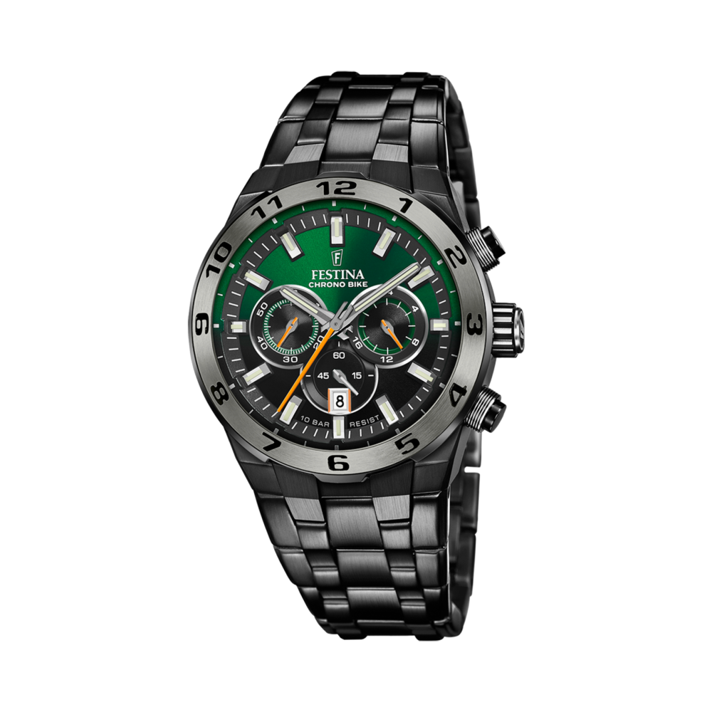 MONTRE FESTINA CHRONO BIKE F20673/2 VERT BRACELET EN ACIER INOXYDABLE HOMME. Chaque montre Lotus est livrée dans un écrin spécifique griffé Festina.
