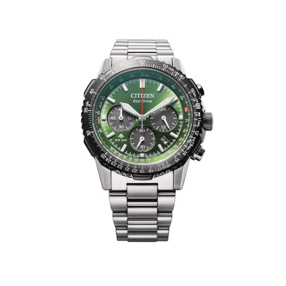 Le chronographe CA4664-60W de la série SKY, récemment lancé, est doté du mouvement Eco-Drive (B620) et d'un cadran vert brillant. Avec un diamètre de 40 mm, ce modèle se distingue comme l'un des plus petits et compacts de la gamme Promaster SKY.