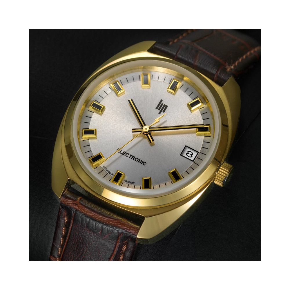Dans les années 50, LIP révolutionne l’horlogerie avec la première montre bracelet électrique, fruit de dix ans de recherches. Le général de Gaulle puis Eisenhower en porteront un exemplaire, symbole de savoir-faire français et de prouesse technique. Ce modèle incarne cette avancée historique, ouvrant la voie aux futures montres à quartz.
