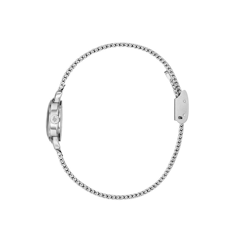 La montre Lip Henriette séduit par son boîtier en acier inoxydable de 18 mm, délicatement poli, qui encadre un cadran argenté à la finition soleillée éclatante. Véritable bijou au poignet, elle s’accompagne d’un bracelet ajustable en maille milanaise argentée, alliant glamour et esprit vintage. Une montre féminine et intemporelle, parfaite complice des femmes d’aujourd’hui qui aiment conjuguer élégance et modernité.
