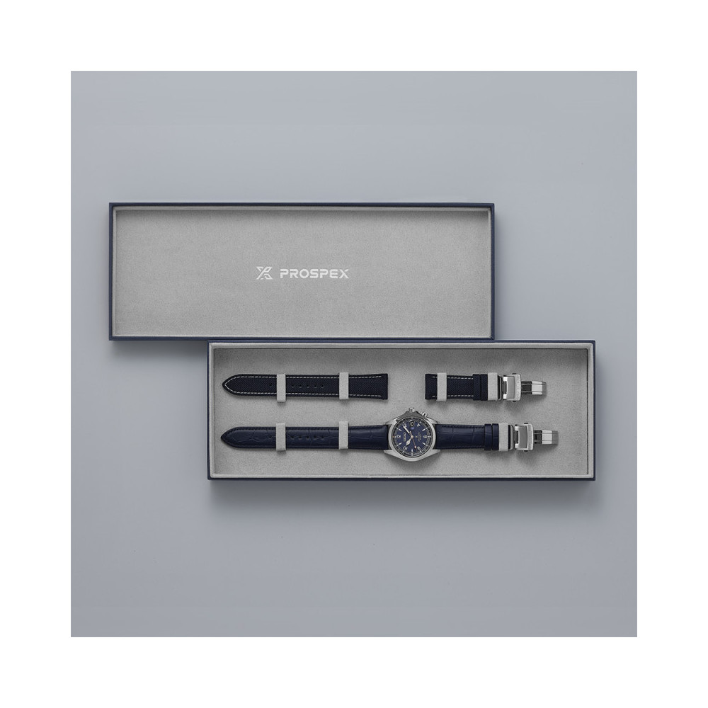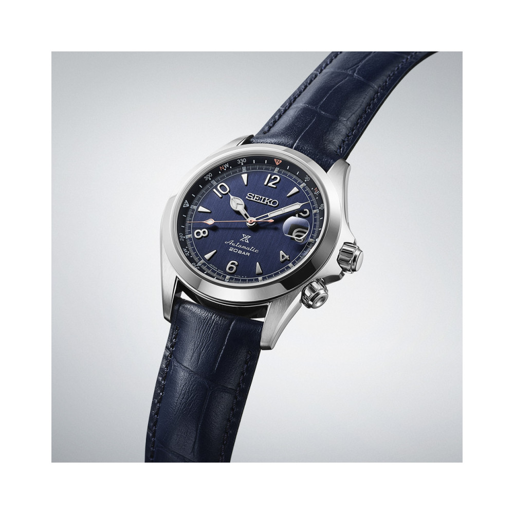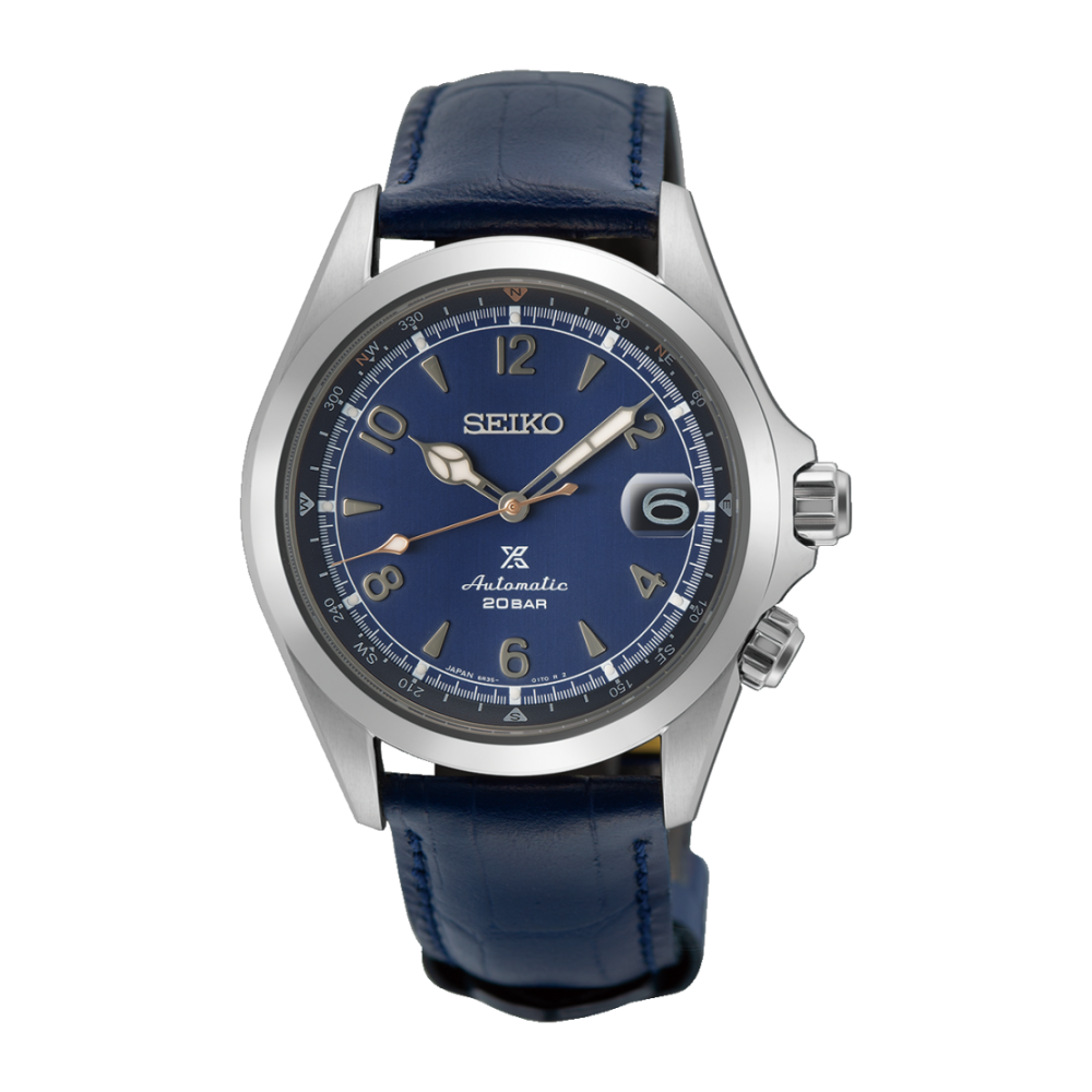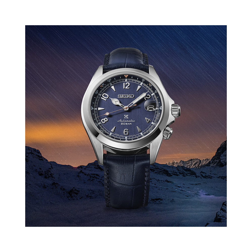 Cette Seiko Prospex de la ligne Alpinist revisite la toute première montre de sport de la marque lancée en 1959, pensée ici pour les aventuriers d’aujourd’hui. Proposée en exclusivité pour l’Europe, elle adopte une palette de couleurs évoquant le ciel étoilé surplombant le Cervin. Son cadran bleu profond, orné d’une texture verticale subtile, rappelle la clarté des nuits en altitude. Livrée avec deux bracelets — un en cuir de veau bleu marine et un en nylon — cette Alpinist offre une polyvalence idéale pour varier les styles.