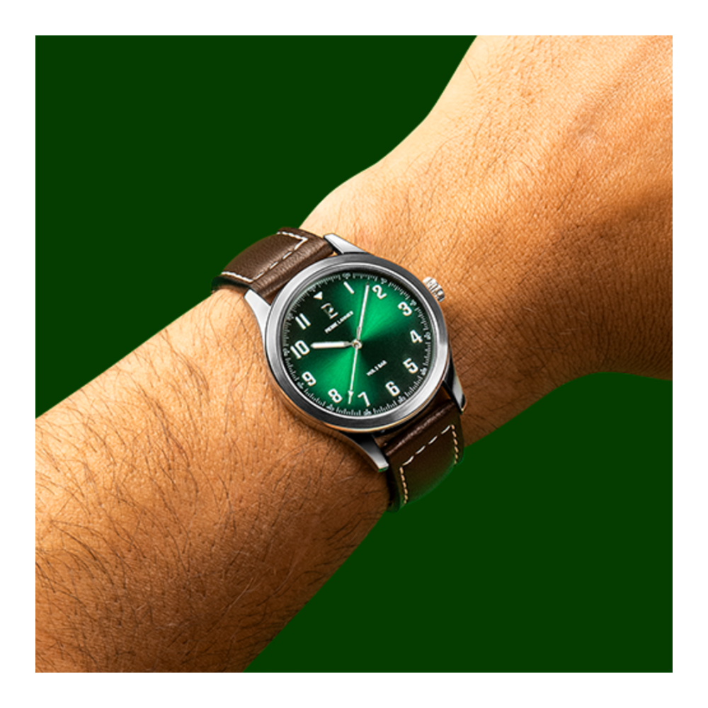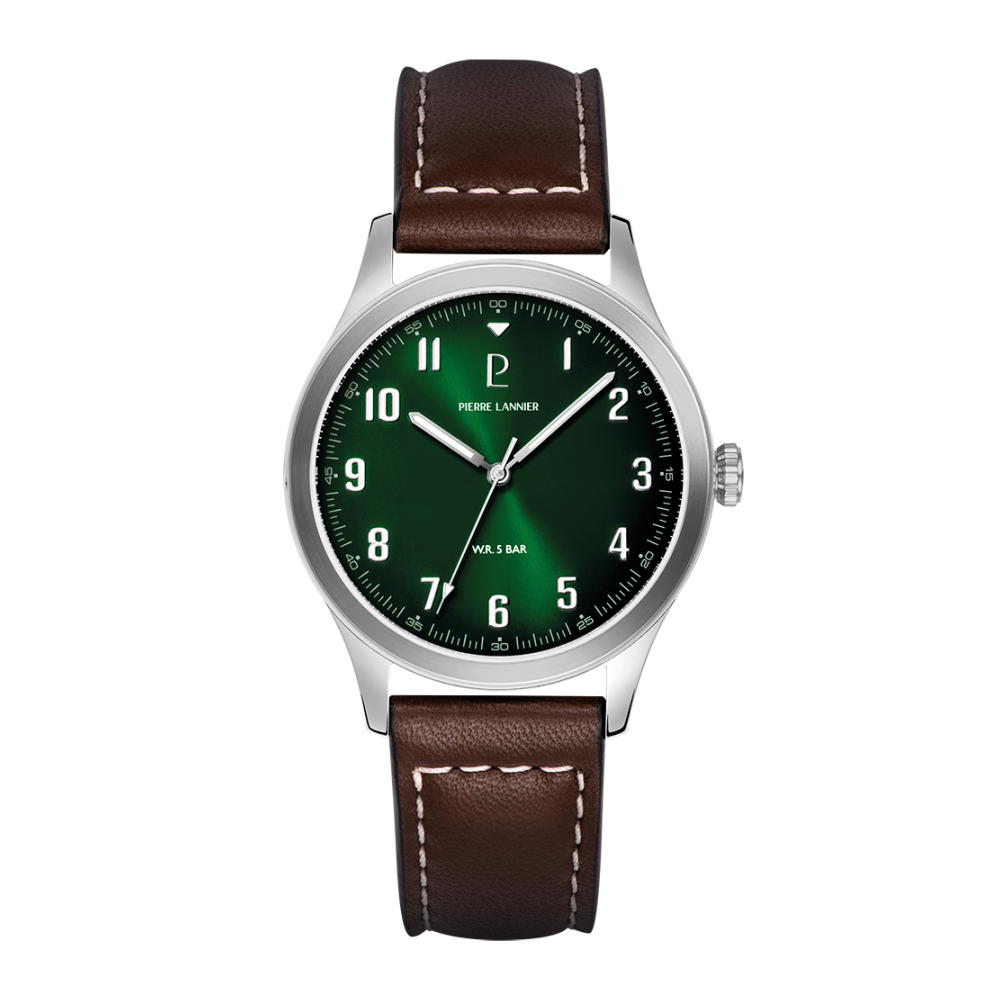 AVIATEUR argenté cuir. Chaque montre est livrée dans un écrin spécifique griffé au nom de Pierre Lannier et bénéficie d'une garantie internationale de 2 ans. Montre fabriquée avec beaucoup d'amour en France (67 - Bas Rhin).