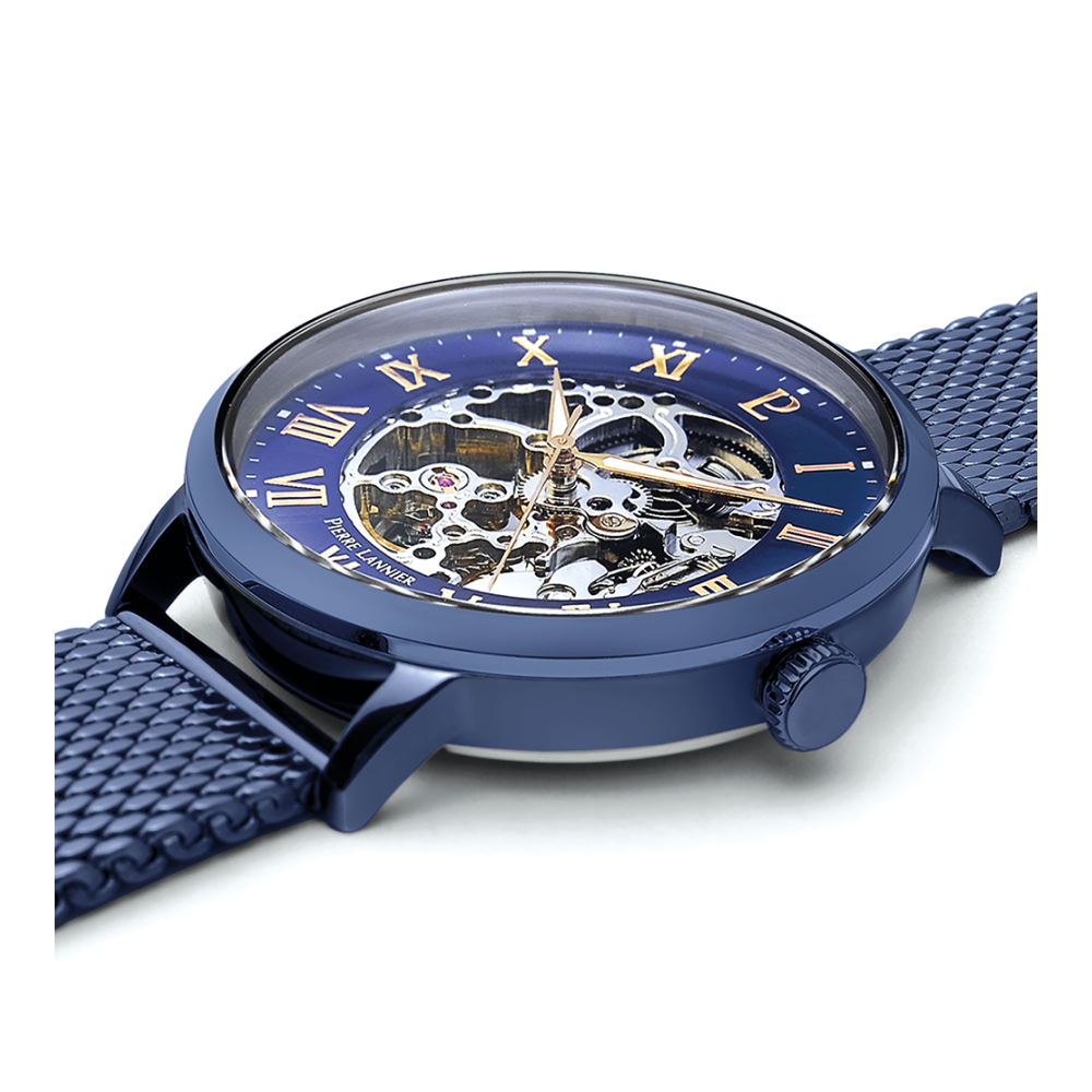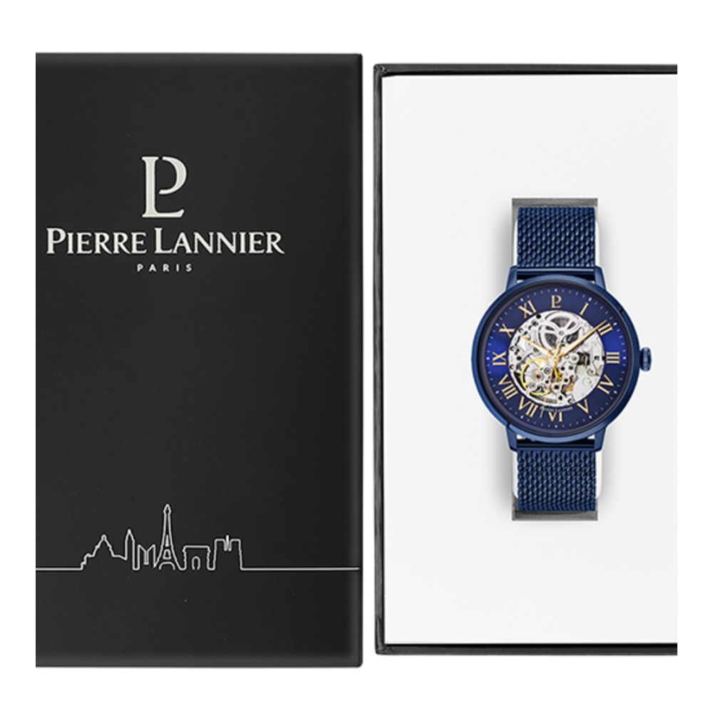 AUTOMATIC bleu milanais. Chaque montre est livrée dans un écrin spécifique griffé au nom de Pierre Lannier et bénéficie d'une garantie internationale de 2 ans. Montre fabriquée avec beaucoup d'amour en France (67 - Bas Rhin).