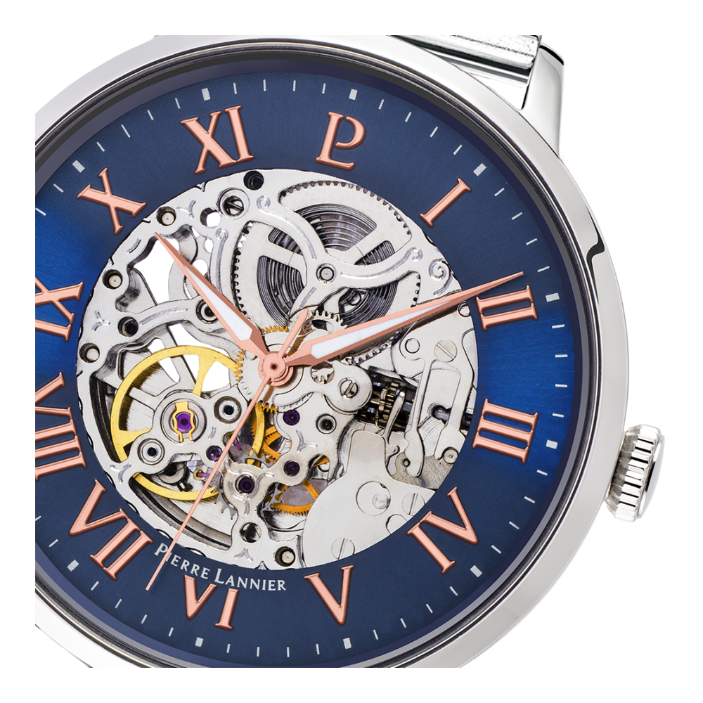 Coffret AUTOMATIC argenté milanais. Chaque montre est livrée dans un écrin spécifique griffé au nom de Pierre Lannier et bénéficie d'une garantie internationale de 2 ans. Montre fabriquée avec beaucoup d'amour en France (67 - Bas Rhin).