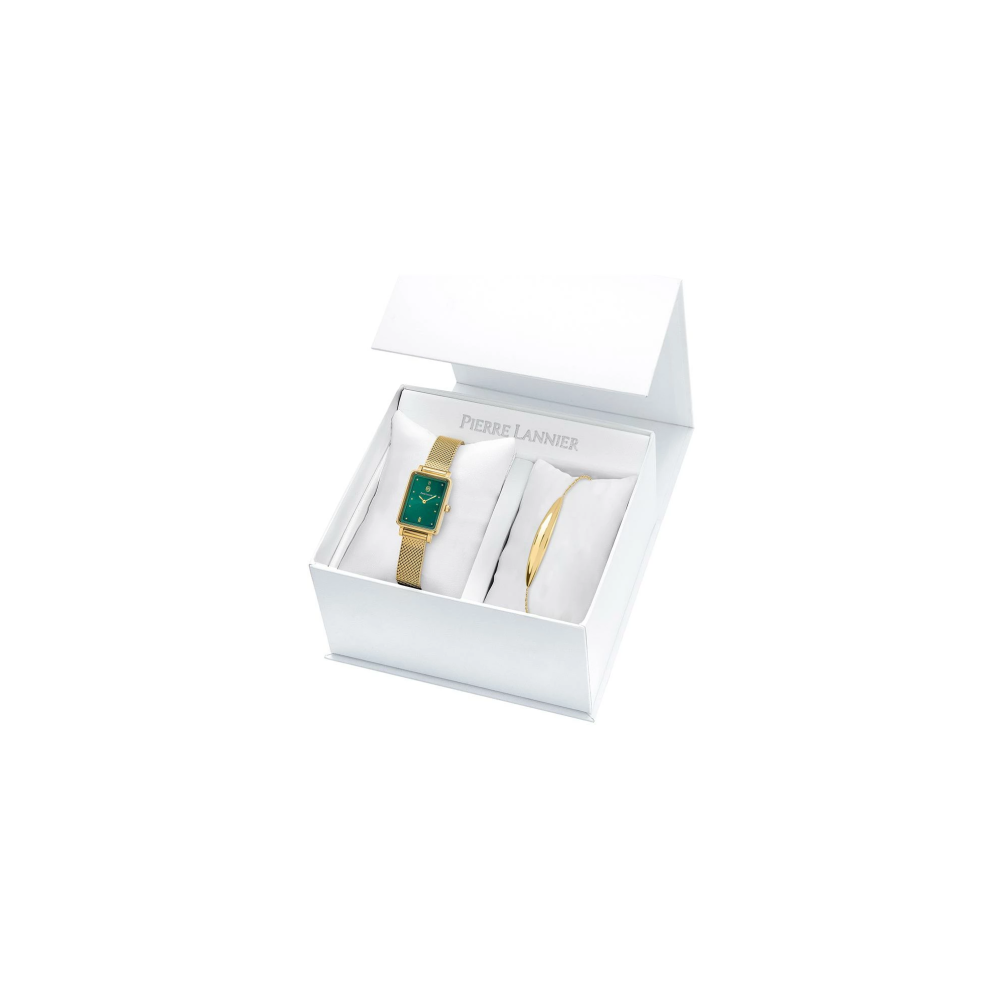Coffret ARIANE doré métal. Chaque montre est livrée dans un écrin spécifique griffé au nom de Pierre Lannier et bénéficie d'une garantie internationale de 2 ans. Montre fabriquée avec beaucoup d'amour en France (67 - Bas Rhin).