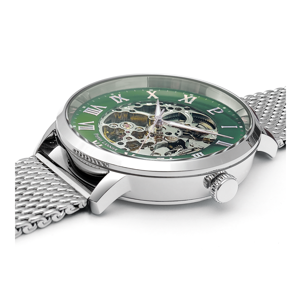 Coffret AUTOMATIC argenté milanais. Chaque montre est livrée dans un écrin spécifique griffé au nom de Pierre Lannier et bénéficie d'une garantie internationale de 2 ans. Montre fabriquée avec beaucoup d'amour en France (67 - Bas Rhin).