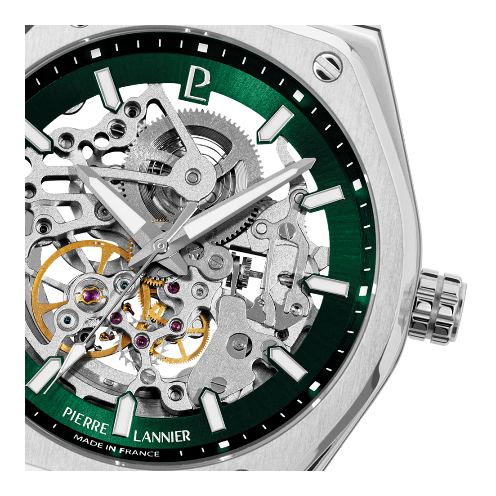 COPILOTE argenté métal. Chaque montre est livrée dans un écrin spécifique griffé au nom de Pierre Lannier et bénéficie d'une garantie internationale de 2 ans. Montre fabriquée avec beaucoup d'amour en France (67 - Bas Rhin).