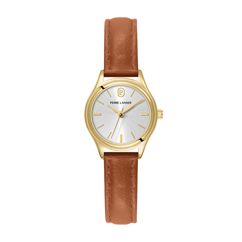 PYA doré cuir. Chaque montre est livrée dans un écrin spécifique griffé au nom de Pierre Lannier et bénéficie d'une garantie internationale de 2 ans. Montre fabriquée avec beaucoup d'amour en France (67 - Bas Rhin).