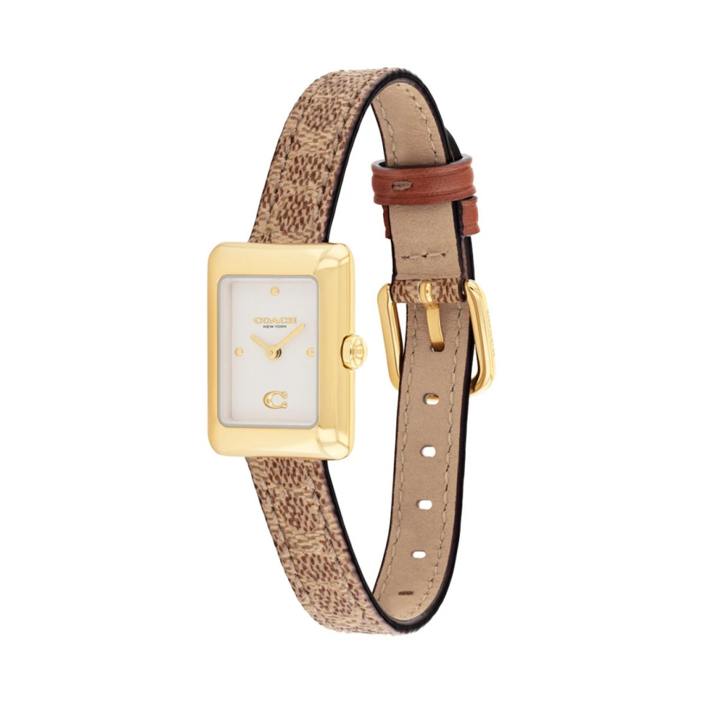montre MARA boite ACIER DORÉ. Chaque montre de la marque est livrée dans un écrin spécifique griffé Coach.