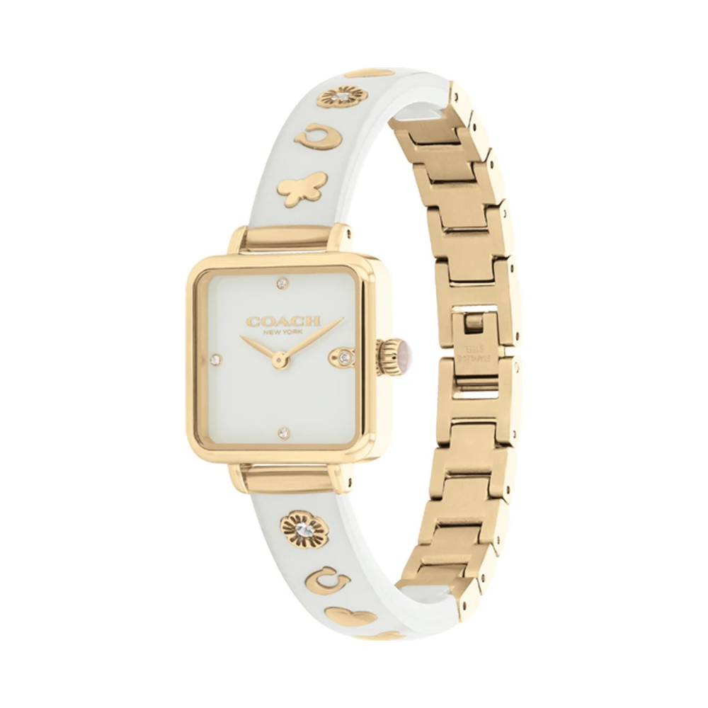 montre CASS boite ACIER DORÉ. Chaque montre de la marque est livrée dans un écrin spécifique griffé Coach.